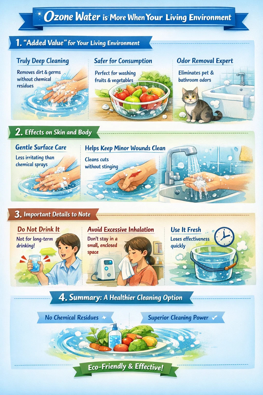 오존수 가정 환경과 개인 위생에 매우 유익합니다. 그것은 "만능 청소 도우미"와 같습니다. 그러나 모든 좋은 것들이 그렇듯이, 중요한 것은 그것을 어떻게 사용하느냐입니다.